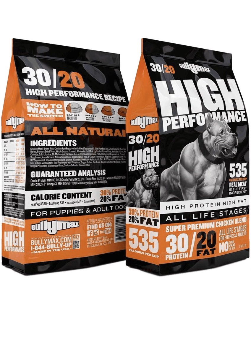 Bully Max 3020 High Performance Dog Food Save 25 compared to regular one-time order 5 pound - 1999 15 pounds - 4499 30 pounds - 8999 40 pounds - 11960 60 pounds - 17999 80 pounds - 23920.